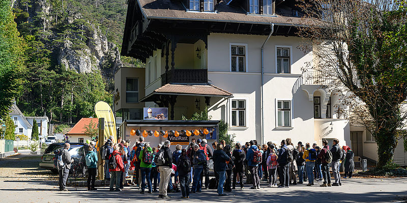 Am 5. Oktober fand der erste Walk4VinziRast statt: 90 Teilnehmer:innen wanderten für die VinziRast von Baden nach Mayerling entlang der Via Sacra. Mit der Anmeldung spendete jede:r 25 Euro und unterstützte damit persönlich die VinziRast. Außerdem konnten wir die Raiffeisen Bank International als Sponsorin gewinnen: Sie spendete weitere 50 Euro pro Teilnehmer:in. Ich halte die VinziRast, die obdachlosen und geflüchteten Menschen nicht nur eine Anlaufstelle, sondern auch Geborgenheit bietet, für sehr wertvoll. Ich freue mich daher sehr, dass die RBI nun ihre erste Benefizwanderung sponsern konnte, so Dr. Christine Würfel von der Raiffeisen Bank International. Beim anschließenden Herbstfest wurde noch den ganzen Tag gefeiert, getanzt, geschmaust und bei der Tombola zahlreich gewonnen. Wir danken allen, die zum Gelingen des ersten Walk4VinziRast und zum Herbstfest beigetragen haben und vor allem der RBI für ihren großzügigen Beitrag!